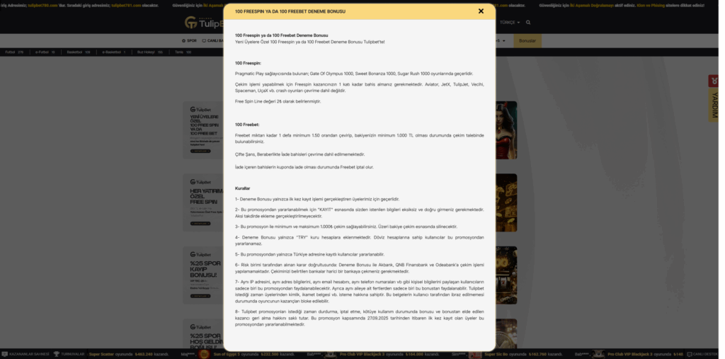 Tulipbet Yeni Üyelere 100 Freebet veya Freespin Deneme Bonusu